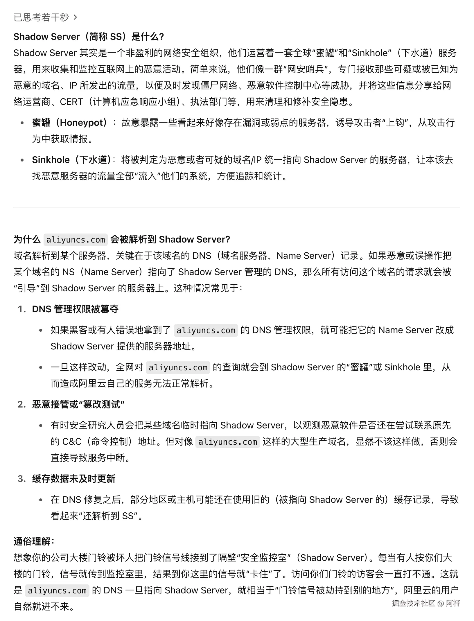 有网友在微博上表示这次故障的原因是域名被劫持,解析到了 SS (Shadow Server)。