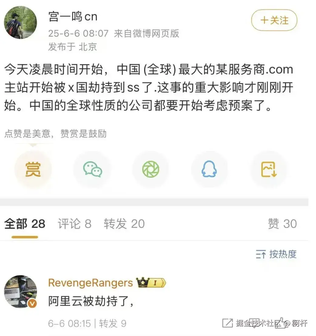 更让人惊讶的是,这并非简单的 DNS 故障,而是该域名的 NS(Name Server)记录被变更,导致全球解析异常。一时间,社交平台和技术社区炸开了锅。