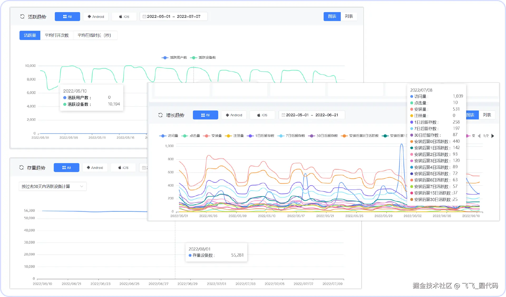 - 精细化促活策略基础:openinstall提供活跃趋势、增长趋势、存量趋势等相关指标,结合用户行为分析,可反映不同渠道推广设计的差异化促活策略效果(如推送特定优惠、内容推荐),全指标与报表都提供“排重”功能及灵活筛选能力,高效辅助精细化运营。