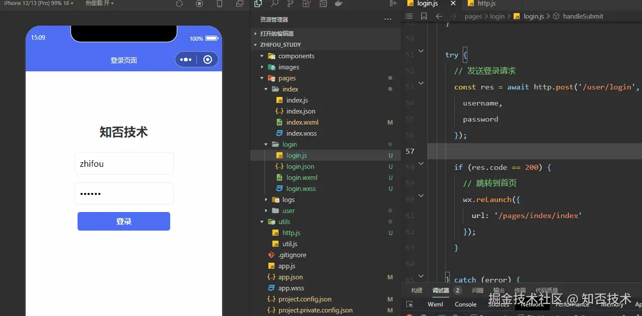 当账号密码校验成功,就调用微信官方的接口 wx.reLaunch 跳转到首页