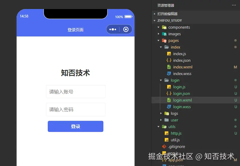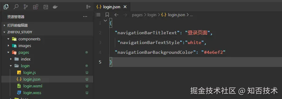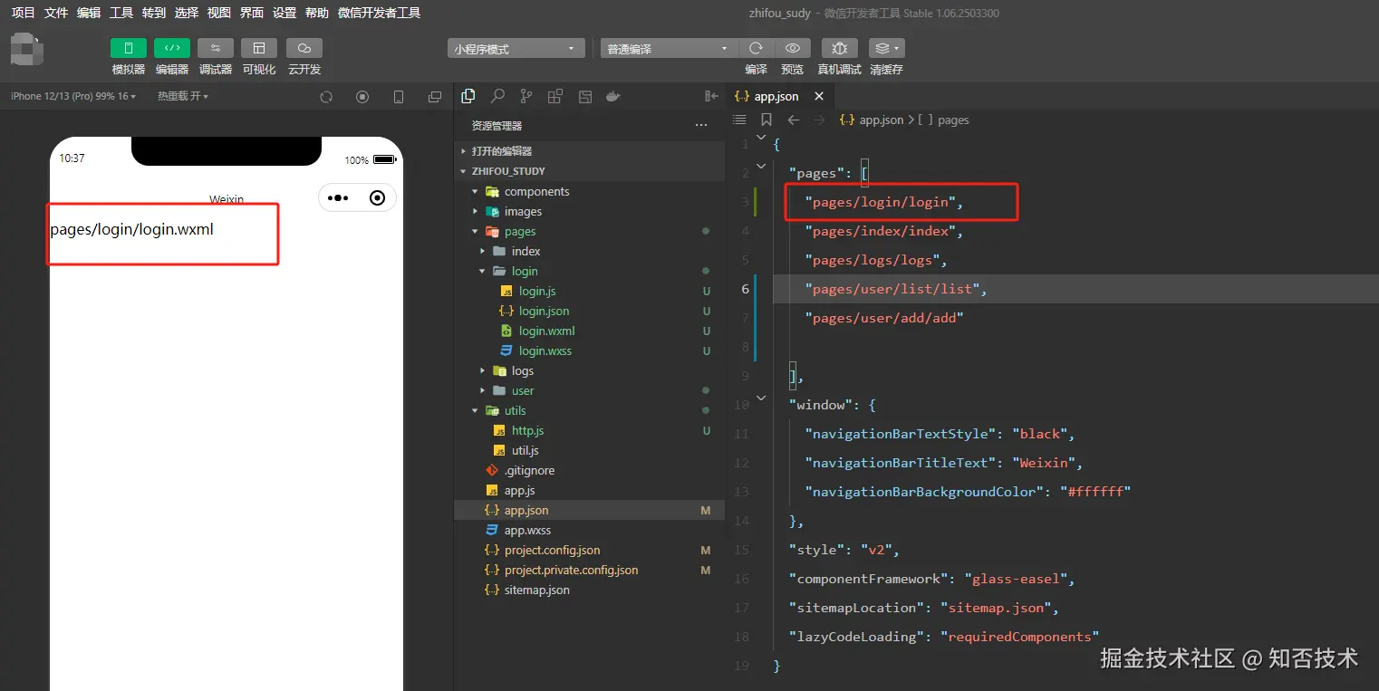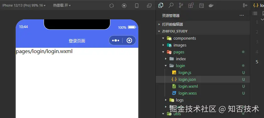 在 pages/login 文件夹下新建 login 的 page,然后在 app.json 里面把登录的路径往前移,这样小程序编译之后首先加载登录的页面: