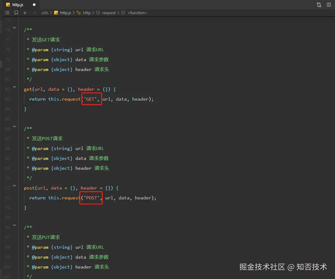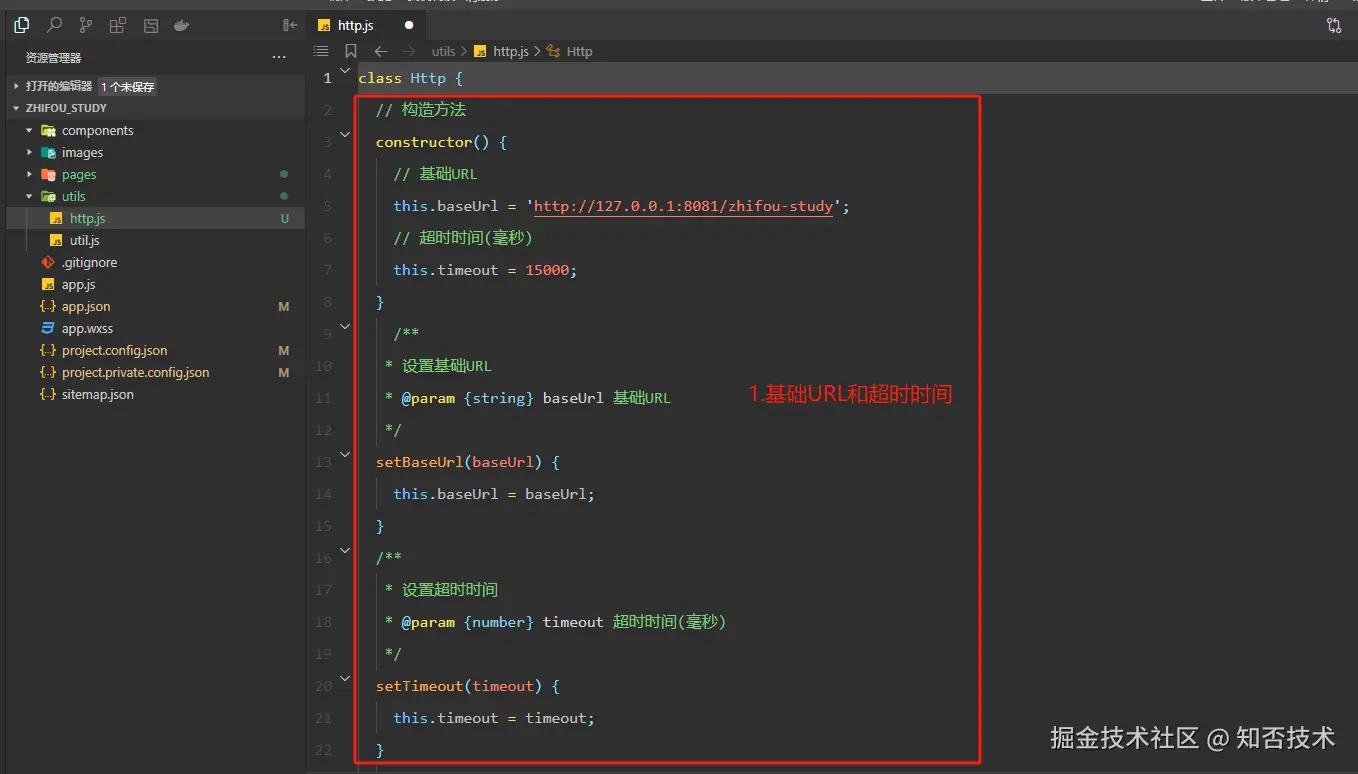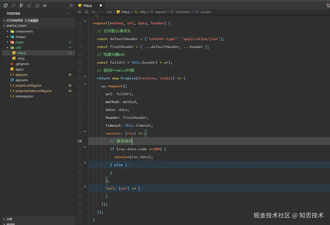 在 util 文件夹下面新建一个 http.js 文件,这个 http 请求工具类主要包含 3 部分: