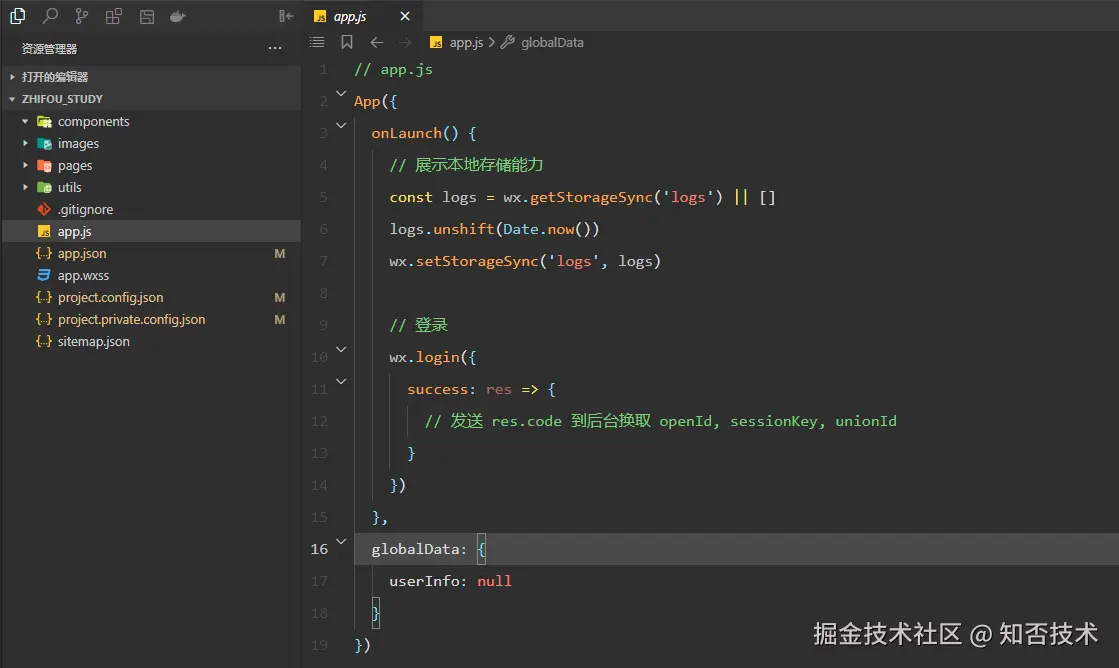 主要用来定义变量、方法、生命周期函数等,还可以调用小程序官方提供的 api。如果类比 Vue3 项目,其实就是 script setup 标签里面的内容。只不过单独变成了一个 js 文件。