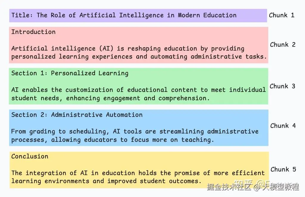 利用原始文档的结构信息(如HTML标签、Markdown标题、PDF书签、Word段落等)进行切分。比如以章节、小标题、列表项为边界进行分块。