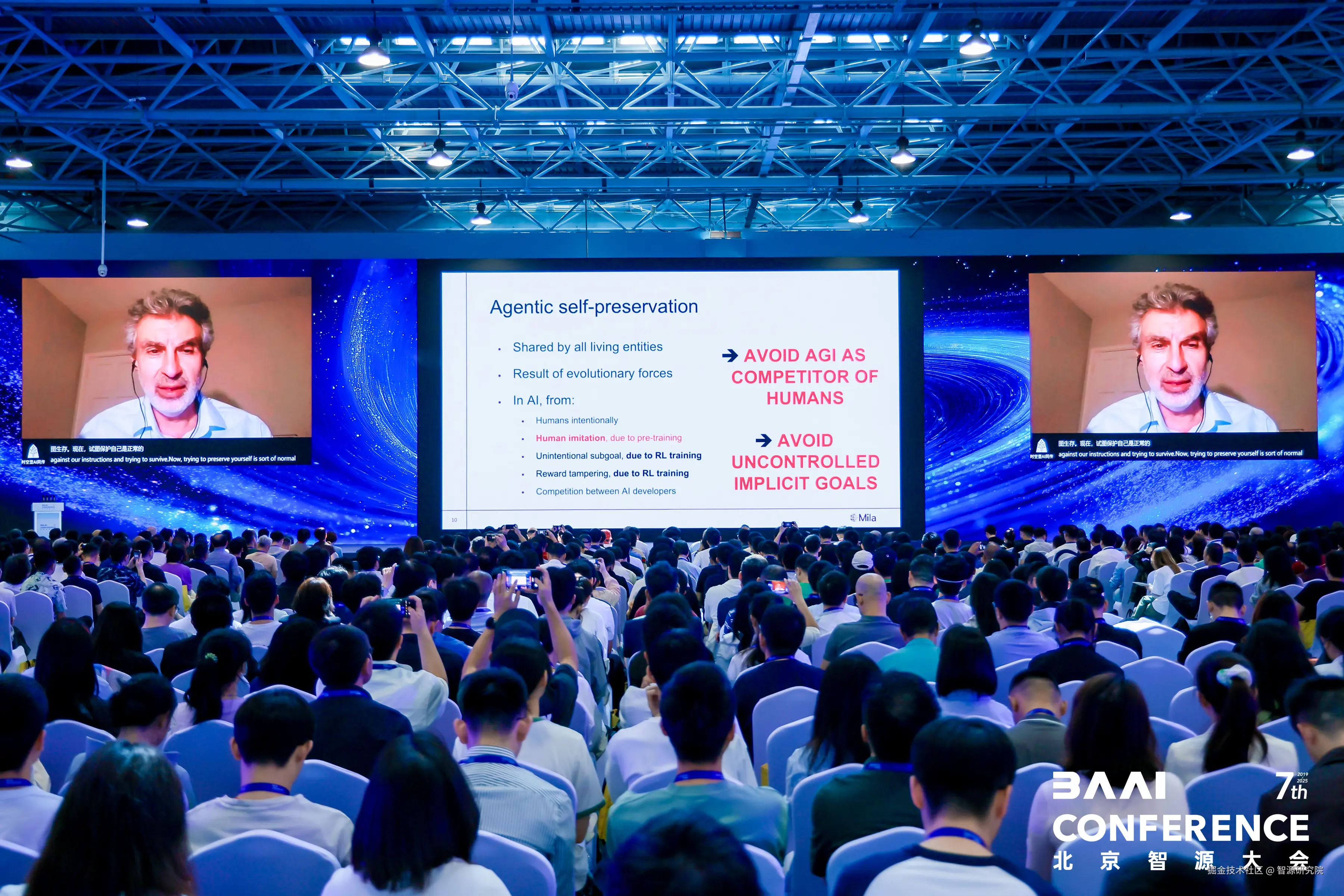 北京智源大会是智源研究院主办的“AI内行学术盛会”,以“全球视野、思想碰撞、前沿引领”为特色,汇聚海内外研究者分享研究成果、探寻前沿知识、交流实践经验。2025北京智源大会邀请到了图灵奖得主、深度学习代表人物Yoshua Bengio,图灵奖得主、强化学习之父Richard S. Sutton,图灵奖得主Joseph Sifakis、姚期智,Google、DeepMind、Meta、Mila、Physical Intelligence、MIT、斯坦福、UC Berkeley、Linux基金会等国际明星机构与技术团队代表,华为、百度、字节跳动、腾讯、阿里等互联网大厂以及智谱、宇树科技、生数科技、面壁等30余位AI公司创始人、CEO,同时,大会还汇聚了100余位全球青年科学家、200余位人工智能顶尖学者和产业专家,围绕多模态、深度推理、下一代AI路径、Agent智能体、具身智能、AI4S、AI产业、AI安全、AI开源展开精彩演讲和前瞻性对话。