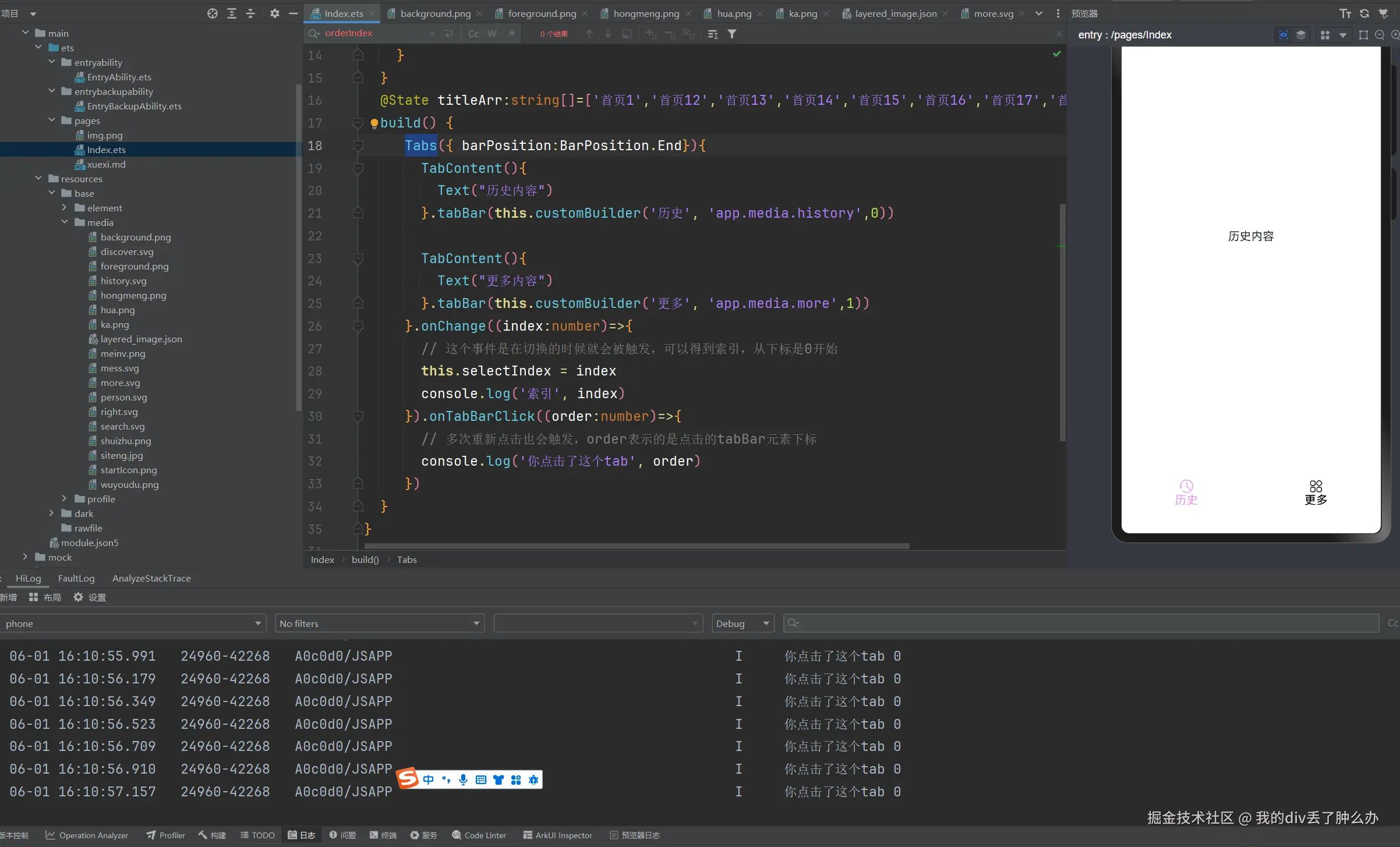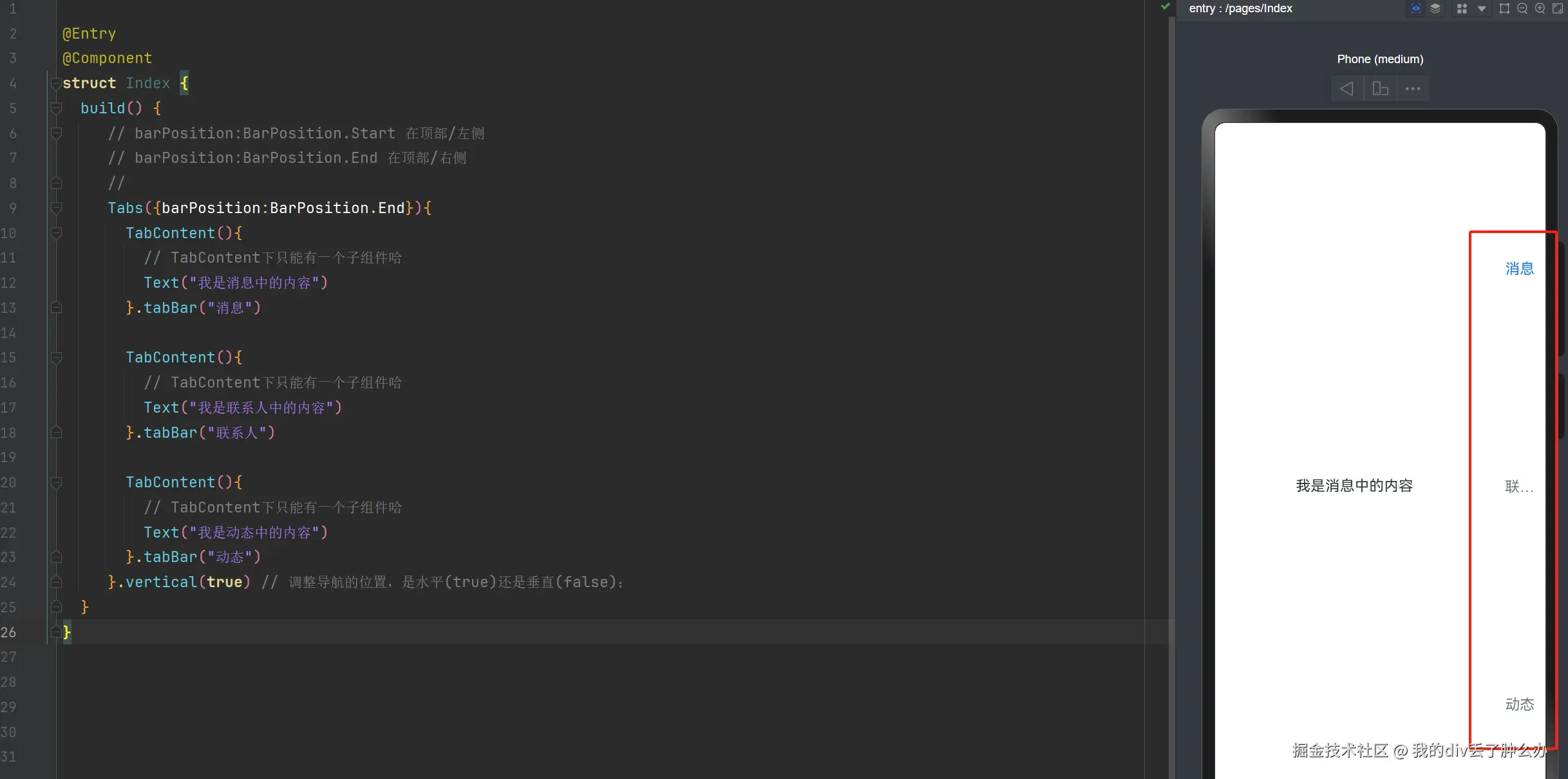 3、动态修改状态变量构造的index属性值,Tab页签切换后触发。