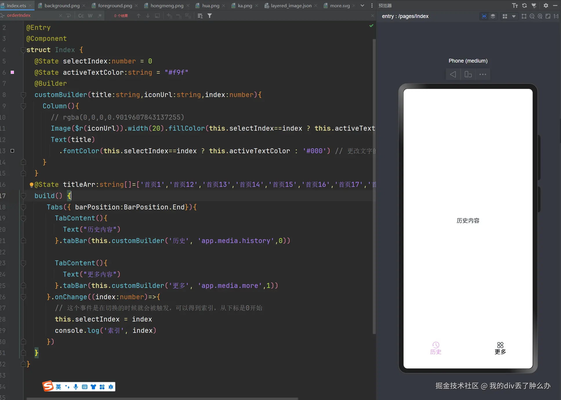 }.tabBar(this.customBuilder('更多', 'app.media.more',1))