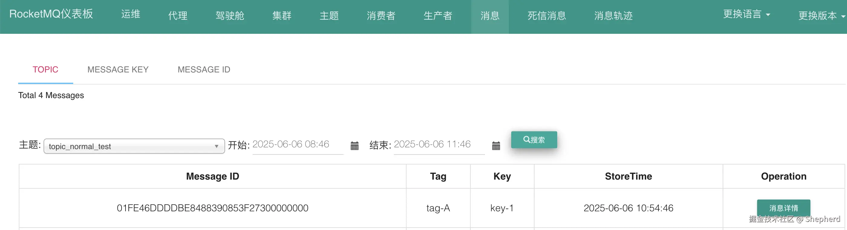[common-demo] [] [2025-06-06 15:11:22.005] [INFO] [RocketmqMessageConsumption-0-17@PID_IS_UNDEFINED] com.shepherd.basedemo.rocketmq.PushConsumerNormalExample lambda$main$0: Consume message successfully, messageId=01FE46DDDDBE846E8608542E4000000000