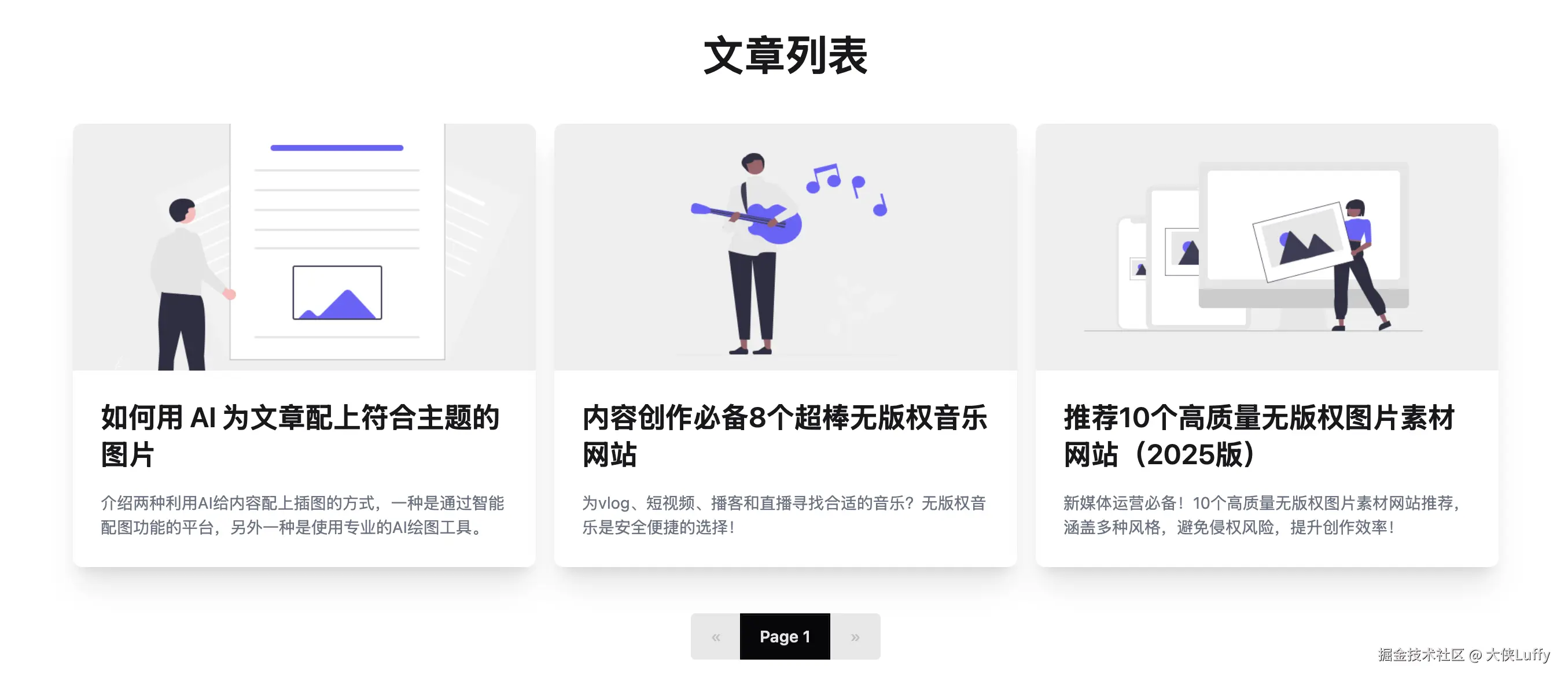 文章内容页面搞定后,还需要一个分页的列表页面,来承载所有的文章,这样才能更好让搜索引擎发现。