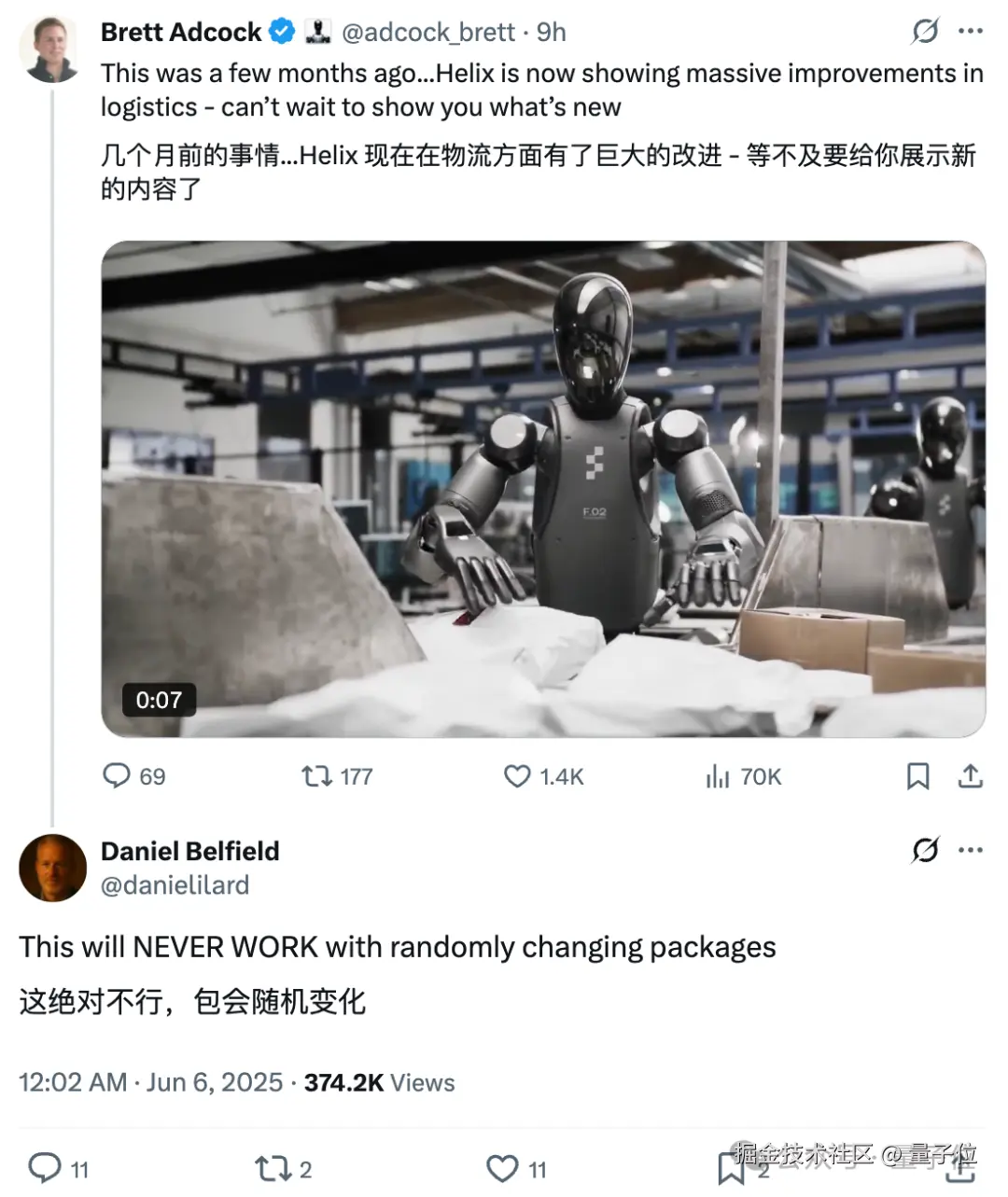 Figure 创始人兼 CEO Brett Adcock 放出的这段视频,直接打脸一位网友的质疑。