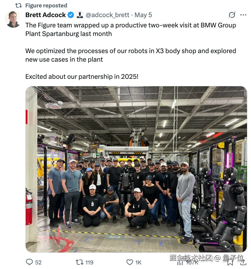 Brett Adcock 还表示,四月份 Figure 团队在宝马斯帕坦堡工厂进行了为期两周的访问。