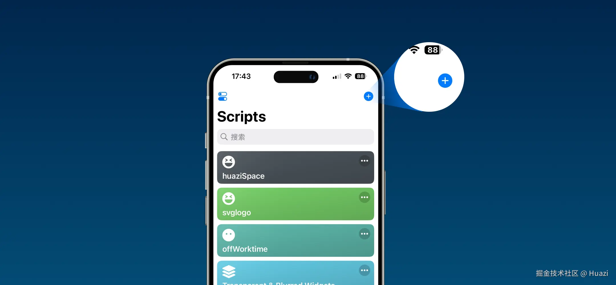 2.点击左上角「+」,搜索并添加 Scriptable 小组件