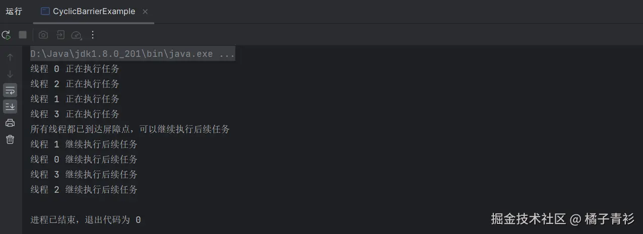 - 回调机制:CyclicBarrier 允许在所有线程到达屏障点时执行一个可选的屏障动作(通过 Runnable 实现)。这个机制可以用于执行一些在所有线程都准备好后需要进行的初始化工作。