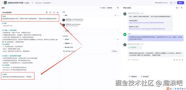 配置和使用短视频制作工具插件需多步骤配合。从新建AI智能体到优化测试,每步都重要。