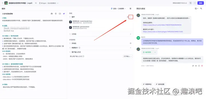 今天要教大家,在各大AI智能体平台开发中,如何配置和使用短视频制作工具插件。