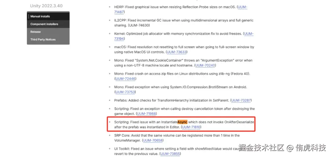 A1:我们在接近你的版本和更高版本试了下,分别复现了问题和正常加载。查了下可能是类似下面的Unity Bug(异步实例化相关的bug有很多),应该要升一下版本。