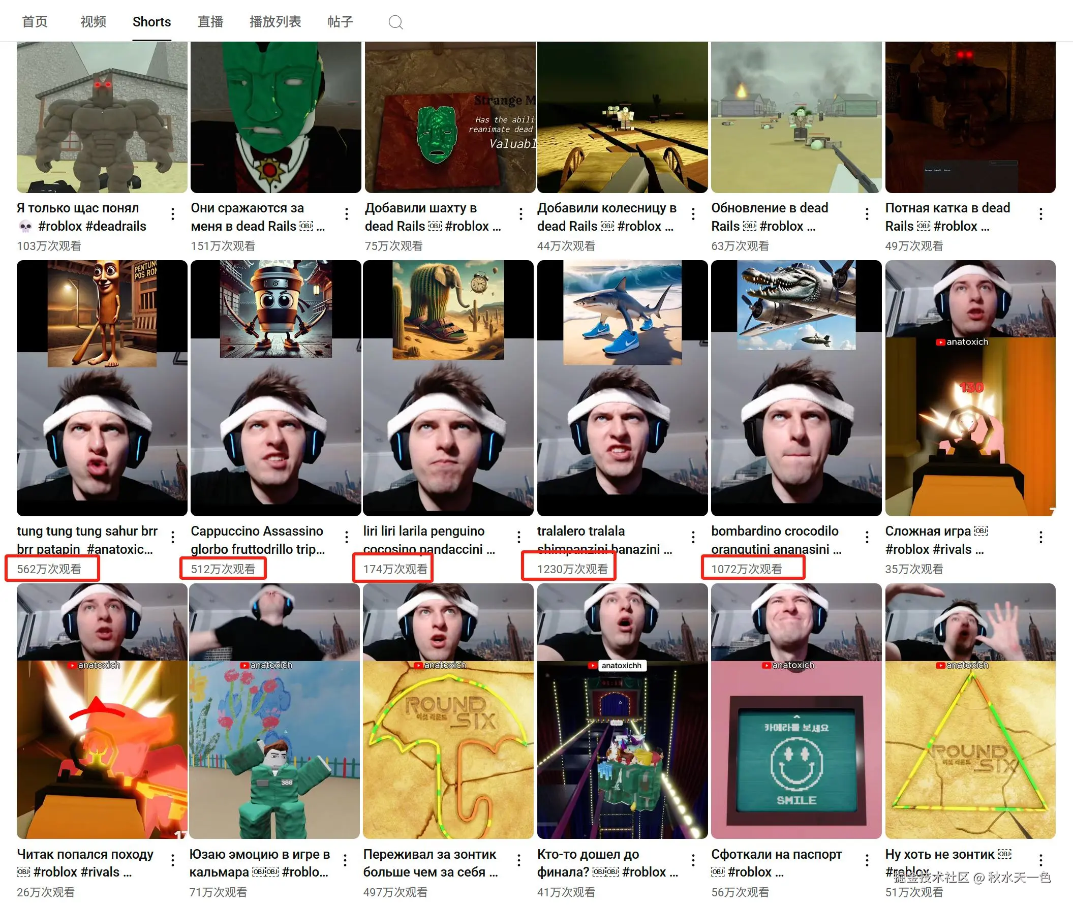 在油管上一个名为Anatoxich(@anatoxich)的搞笑游戏YouTuber,在其Shorts频道上传了游玩恐怖游戏的众多短视频,一般观看量都在百万以下。但其在上传第一个“AI山海经”速读挑战视频内容后,很快观看量就超过了千万,其随后制作的同系列视频平均观看量也在300万以上,而Anatoxich本人也被国内网友们戏称为AI山海经“课代表”。