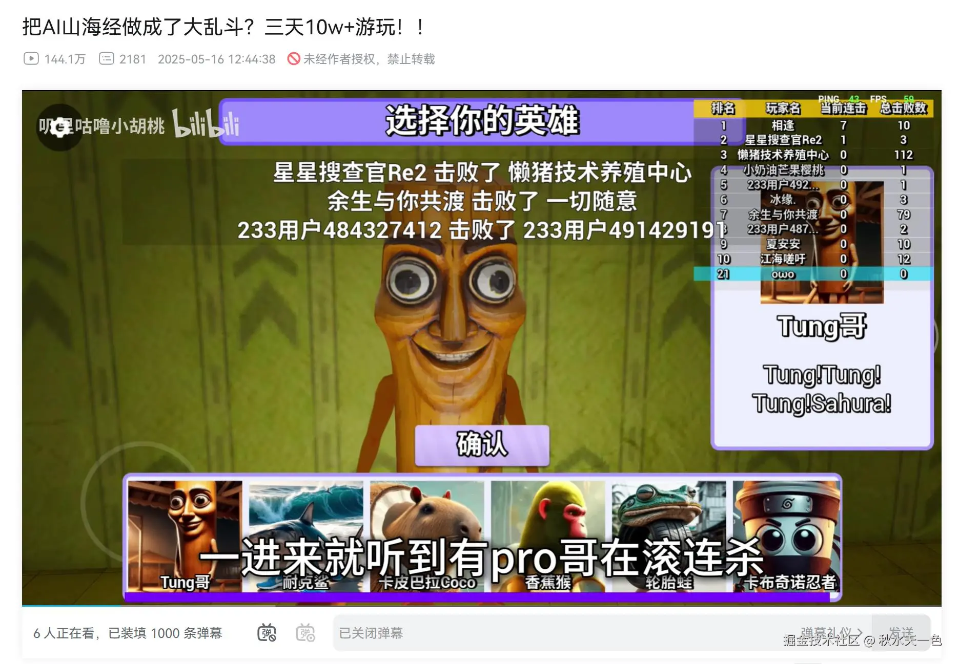 此外也有独立游戏的开发人员尝试把“AI山海经”融入到自己的游戏项目了,B站Up主“叽里咕噜小胡桃”就在5月发布视频来介绍自己的游戏,游戏中融合了多个热门“AI山海经”角色,上线3天的时间就有10万+的游玩。