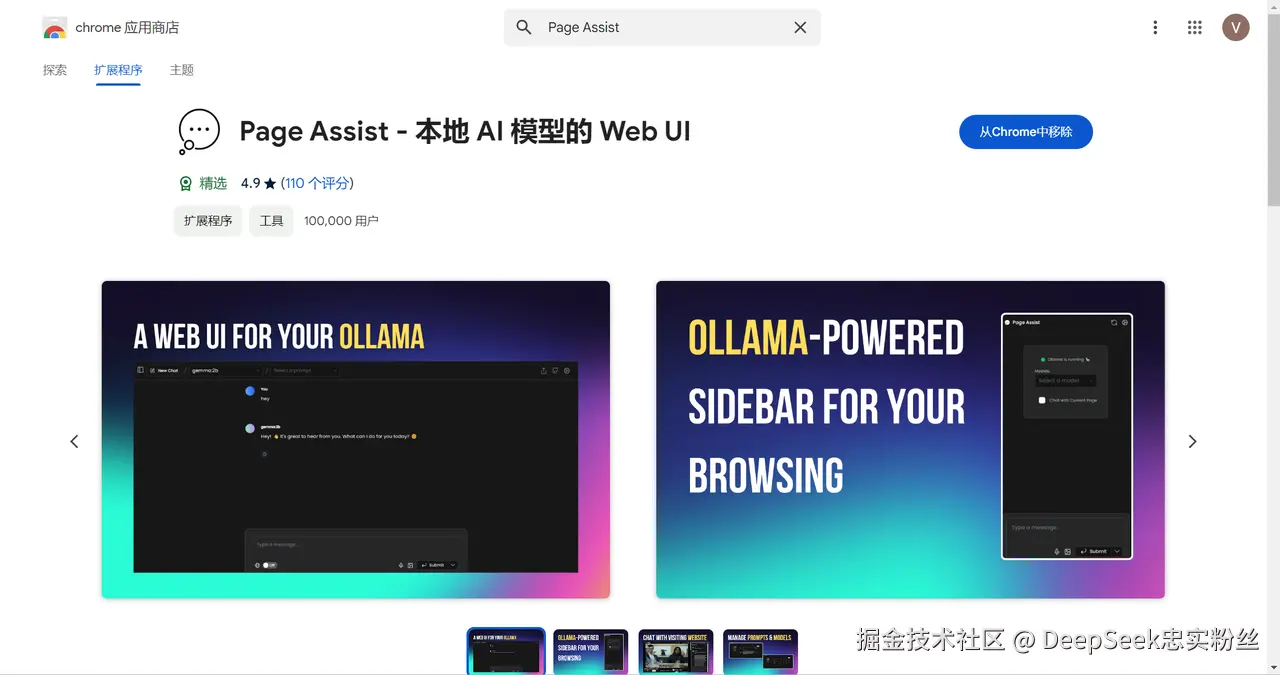 1、安装插件 Page Assist,搜索插件后添加至 Chrome