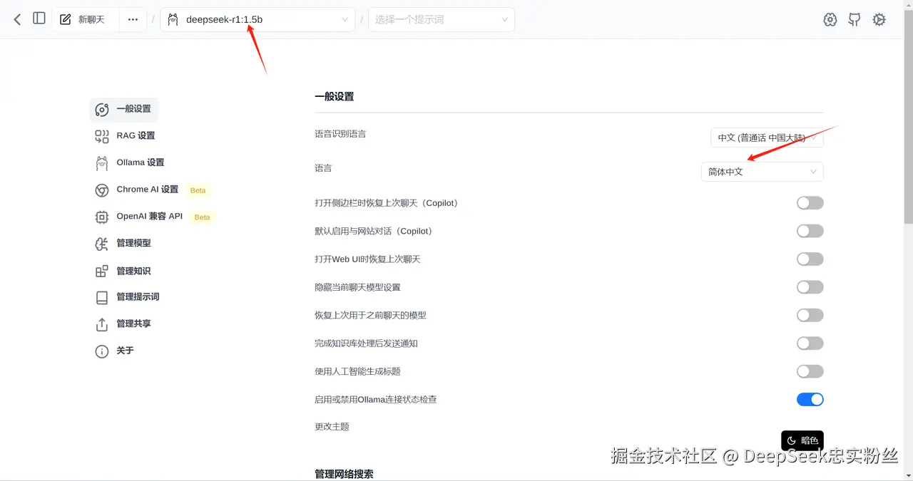 我们还可以通过浏览器插件来访问本地部署的大模型,这个插件还支持本地知识库搭建。