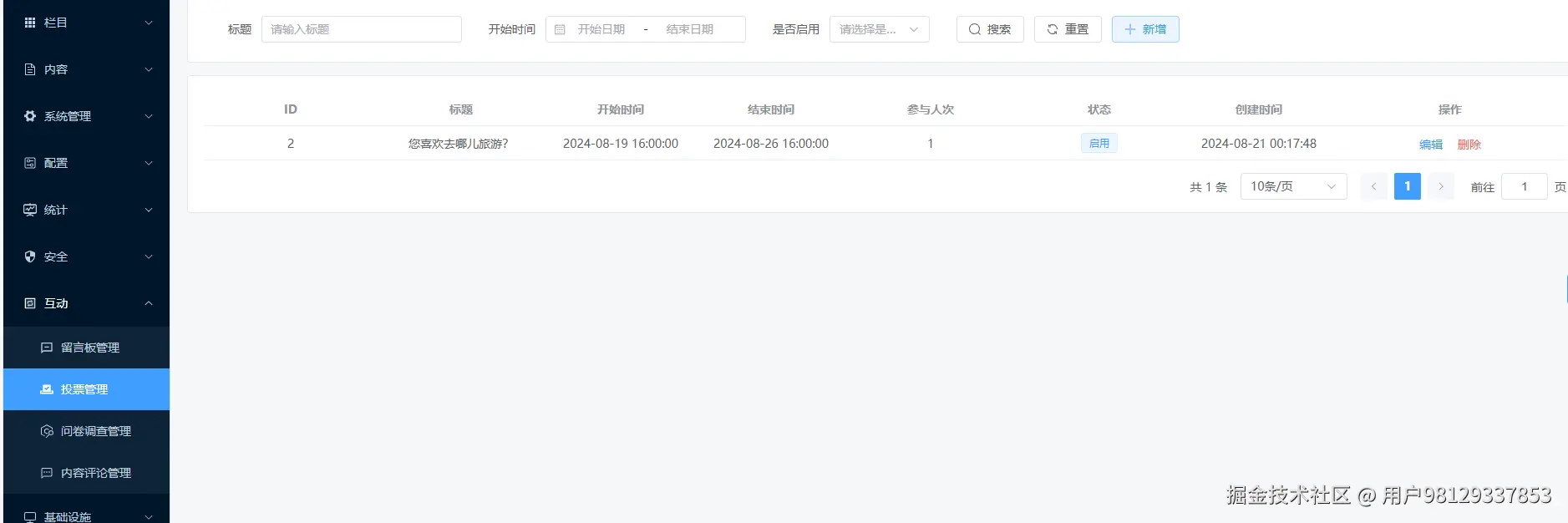 Java 开源内容管理群系统 (java cms)、Java 建站系统。使用 SpringCloud 、SpringBoot、MyBatisPlus、FreeMarker、Vue3、ElementPlus 等技术开发。使用 Apache-2.0 开源协议,可免费用于商业网站。