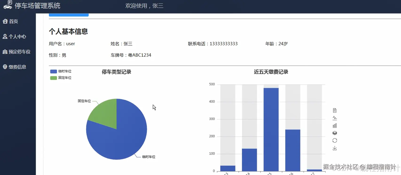 设计并实现用户功能模块:根据用户需求,设计实现用户登录注册、个人中心、预订停车位、缴费信息等功能,确保用户能够方便快捷地使用停车场服务并享受良好的用户体验。
