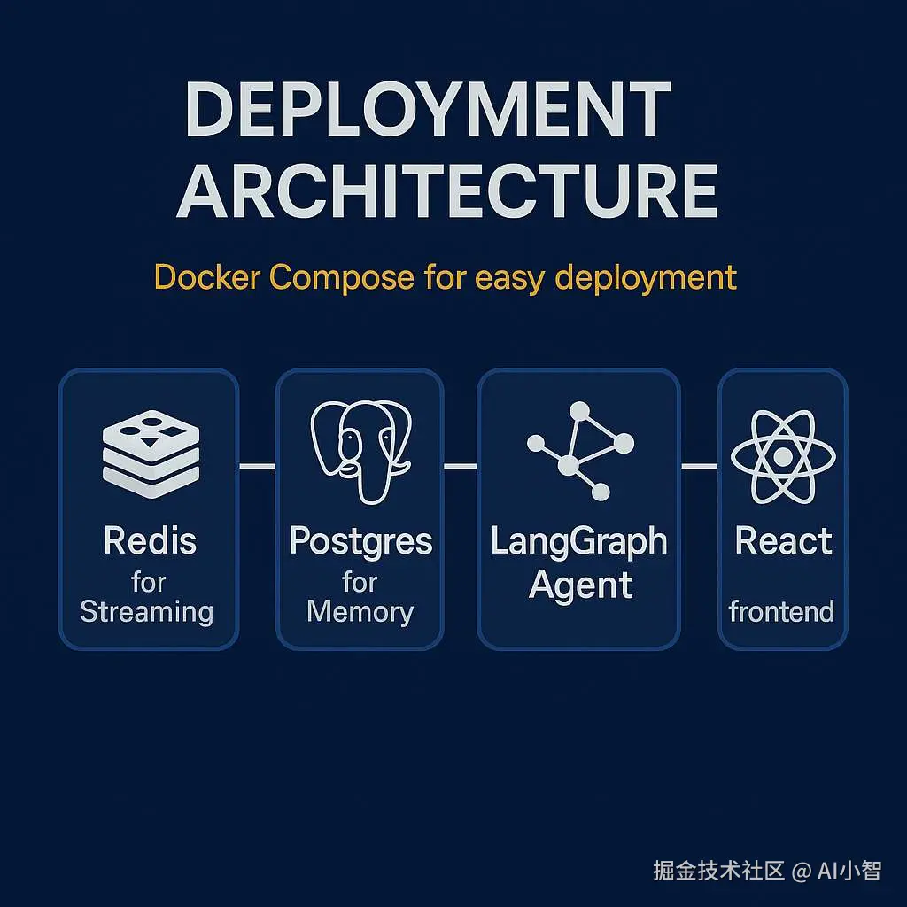 - Redis:用作 LangGraph 的 pub-sub 中枢,实时推送 agent 输出。