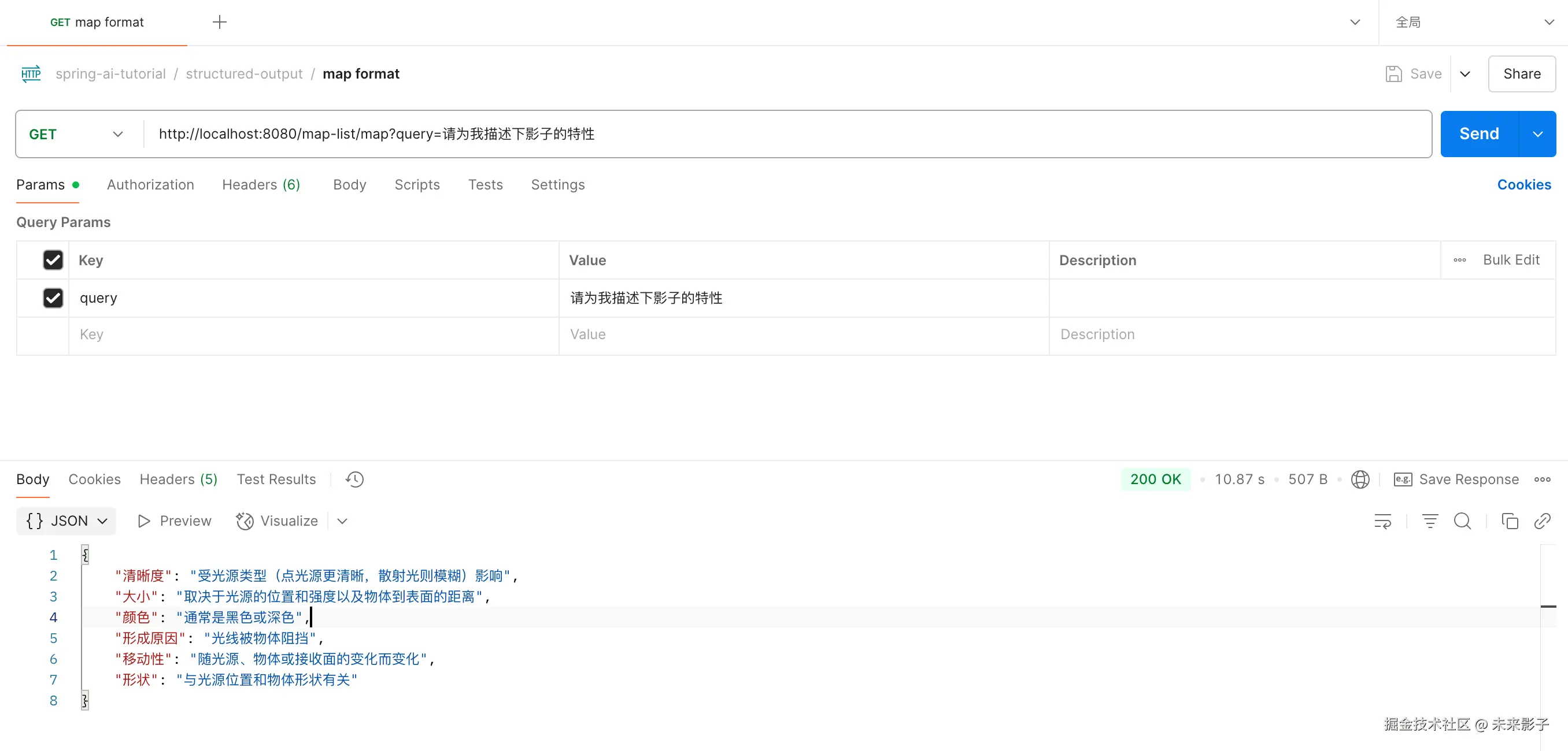 public Map<String, Object> map(@RequestParam(value = "query", defaultValue = "请为我描述下影子的特性") String query) {