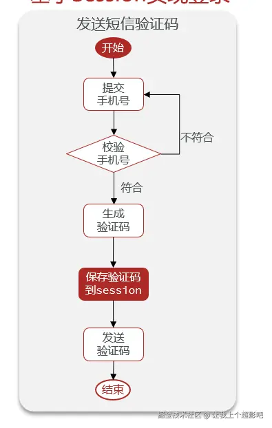用户将验证码和手机号进行输入,后台从session中拿到当前验证码,然后和用户输入的验证码进行校验,如果不一致,则无法通过校验,如果一致,则后台根据手机号查询用户,如果用户不存在,则为用户创建账号信息,保存到数据库,无论是否存在,都会将用户信息保存到session中,方便后续获得当前登录信息