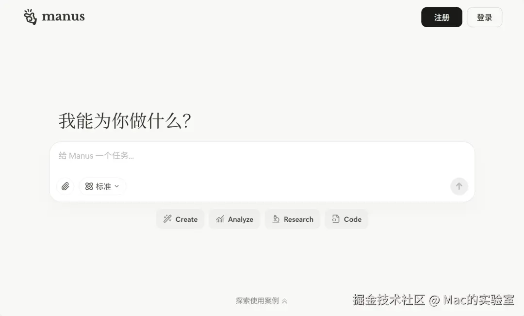 因为官方已经取消了邀请制,所以我们使用Manus只需要完成简单的注册就可以啦。