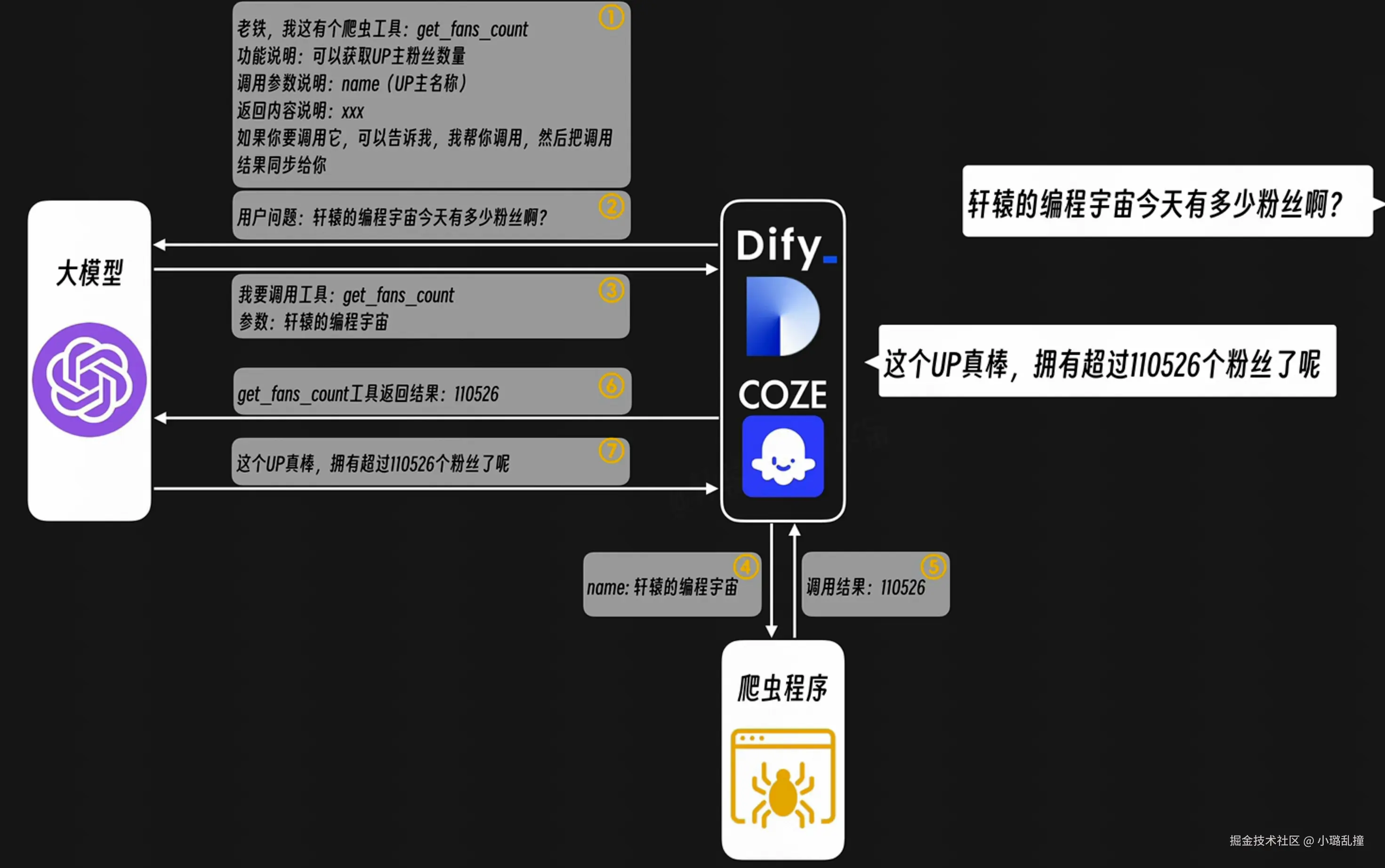 (3)中介程序调用外部程序(这里示例为爬虫程序),并将调用结果返回给大模型。