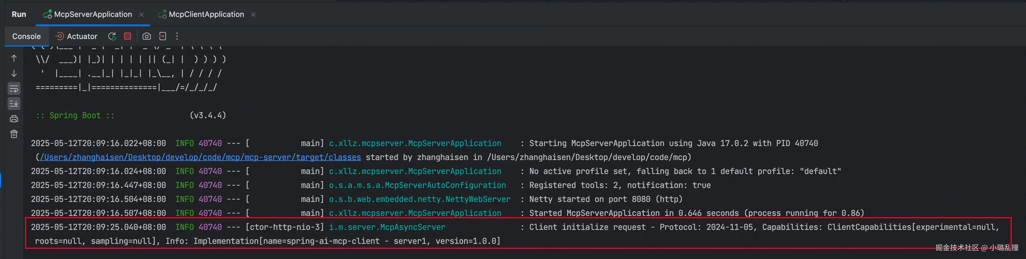 这里结合 Server 的控制台输出,也可以看到 Client 成功调用了 Server 的工具。