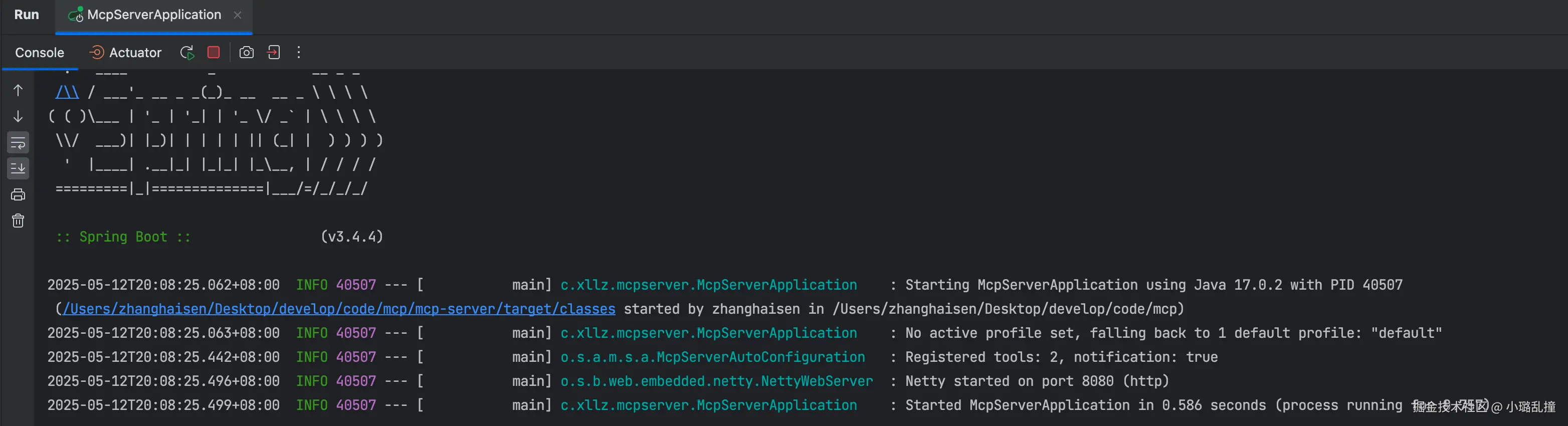 注意:如果使用 Stdio 传输方式,在使用 Spring AI 编写 MCP Client 时,由于 Client 与 MCP Server 之间通过 Stdio 通信,因此 Server 启动时必须严格避免向标准输出写入非协议格式的数据。SpringBoot 在默认配置下会在启动时输出横幅信息(Banner)以及大量日志内容,这些信息会干扰 MCP 协议的正常解析,从而导致 Client 在启动阶段发生协议错误,进而启动失败。