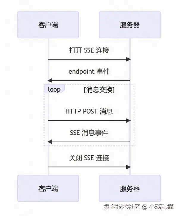 SSE 端点可以理解为客户端与服务端之间的一个连接接口,可以用于服务端向客户端不断推送消息。但由于 SSE 是服务端到客户端的单向传输协议,因此这里还需要一个 HTTP POST 端点,用于客户端到服务端方向的传输接口。