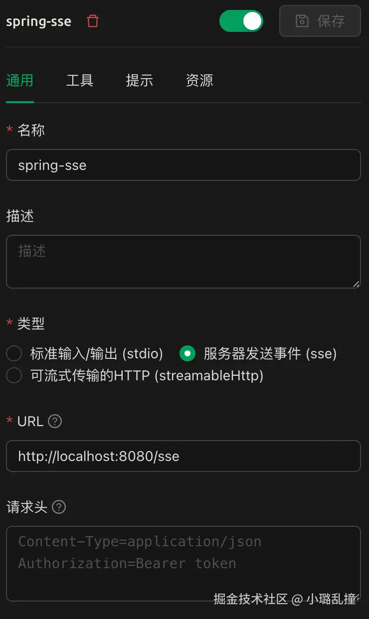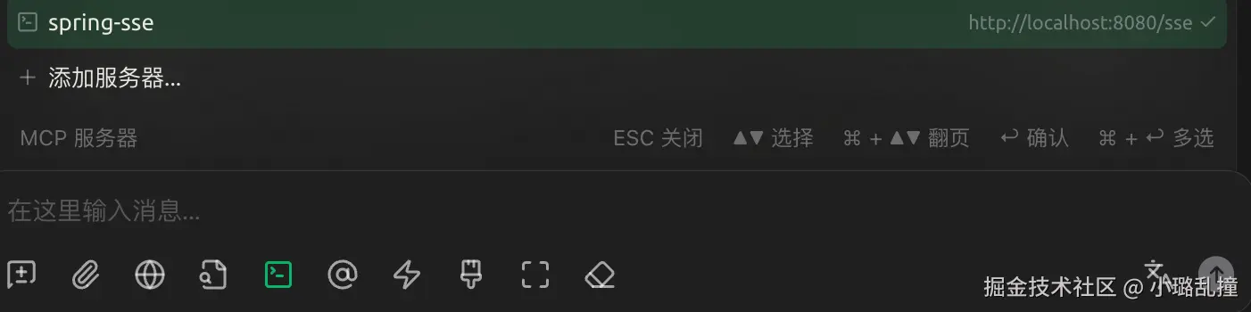 测试前注意把 MCP Server 的传输方式配置成 SSE。