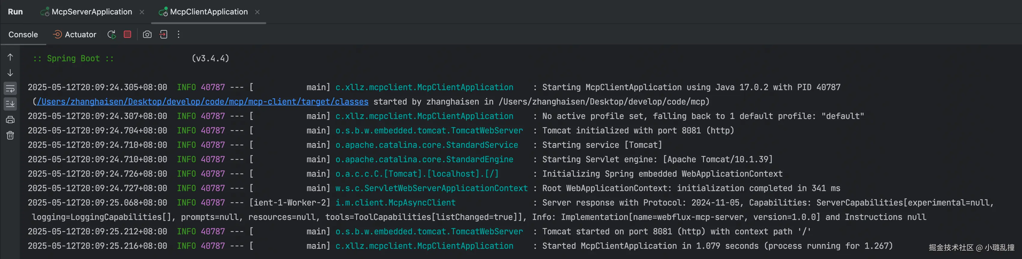 此外,Spring AI 构建的 MCP Client 还需要加入 web 依赖,否则启动会报错。