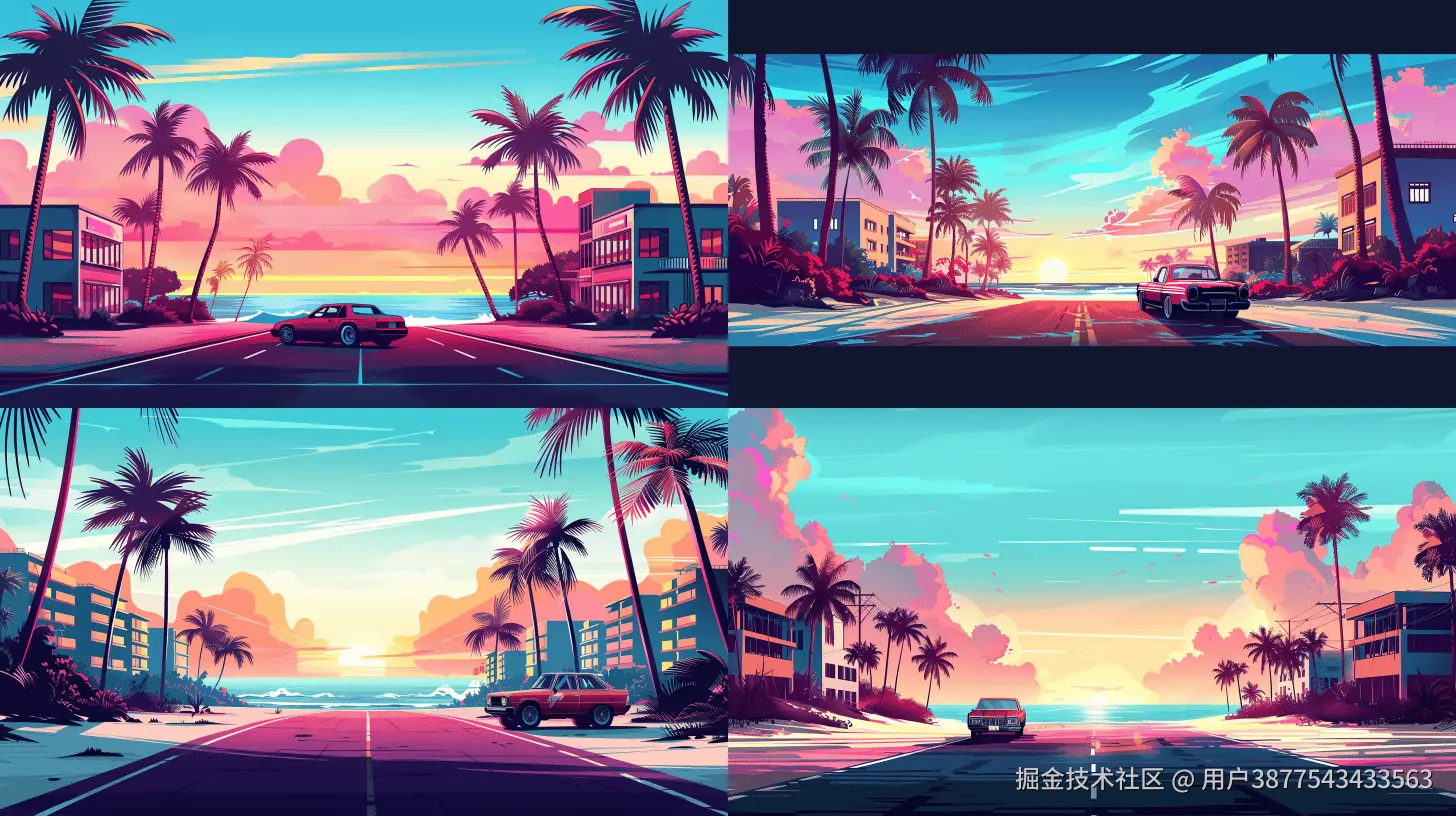 可以看到,在原来的图片整体风格和构图不变的前提下,整个场景变成了海滩旁边,同时公路上还出现了汽车,这就是 Prompt with Image。
