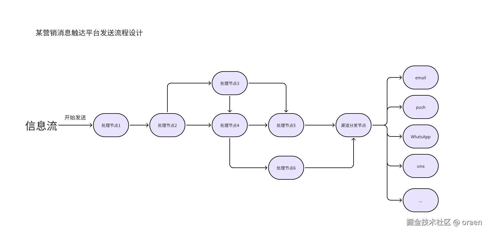 由于消息平台要处理的消息渠道众多,每个消息渠道的处理又大不相同,所以很多时候我们都会把各个渠道的发送交给各供应商去做,来减少我们的工作量,我们只需要把要发送的用户和消息(或模板)提供给他们,由他们来完成实际的发送,这类帮助我们完成消息发送的合作方就叫做消息供应商,比如短信的供应商中国移动,中国电信,whatsapp的消息供应商message bird,infobip,vonage,牛信云,邮件的供应商oracle,emarsys等等