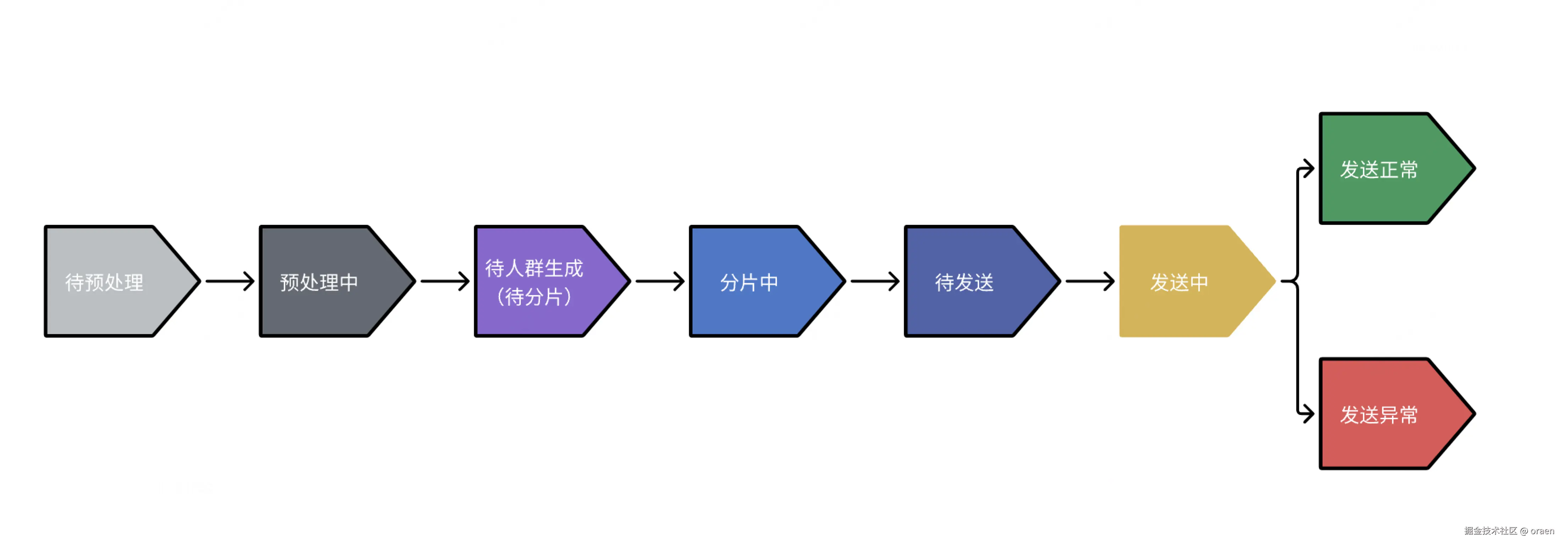 前面我们说的,用户在圈选了人群后,我们根据用户圈选的条件需要生成实际人群,然后再做一系列的分片处理,这肯定需要花一定时间,我们称这个过程为预处理,所以在发送前我们需要预留一定时间来做预处理,在完成预处理完成之前是无法进行发送的,这个动作大约需要几秒钟到几个小时,所以如果你的规则是每天10点发一波消息,根据任务的大小你可能8点甚至6点就要先开始进行预处理了,如果是单次规则,比如业务突然就要立刻给用户发消息,可能就不太现实,除非要发送的人群不大,预处理不需要太多时间,不过好消息是一般正常企业内部的营销都是有计划的,会进行提前规划,很少会有突然发送的情况。