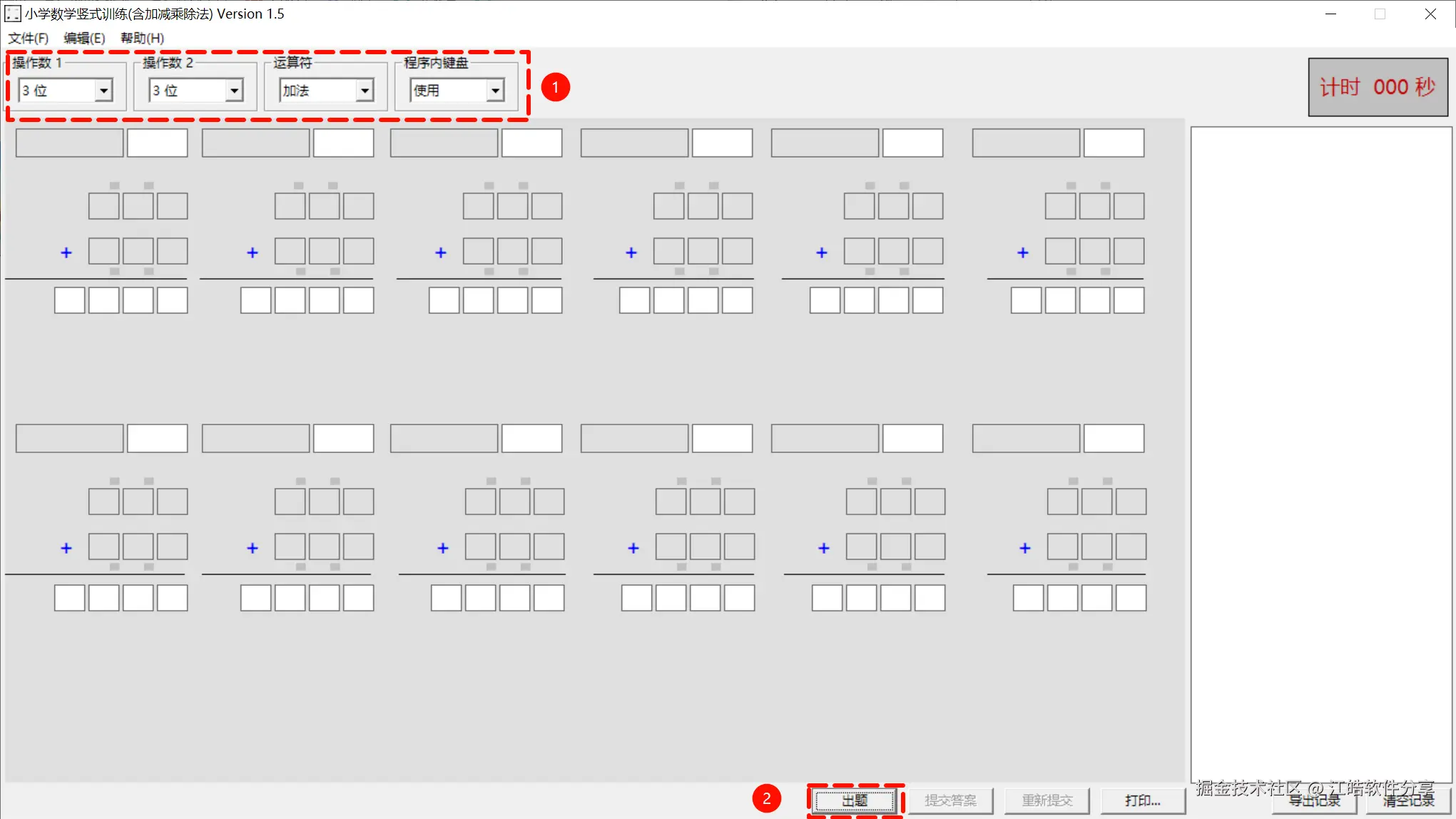 此外,软件还内置打印功能。完成出题后,点击左下角“打印”按钮,即可将全部题目导出为纸质版,方便课堂或家庭作业使用。
