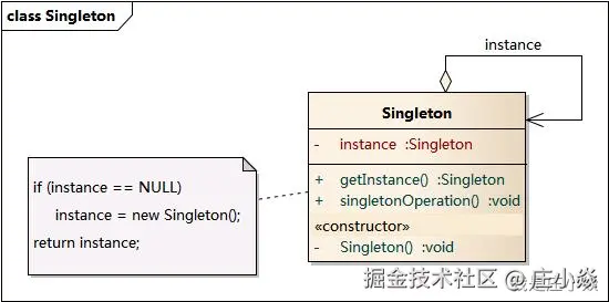 - 这个类自己控制这个唯一实例的创建,并且其他类只能通过它提供的方法来获取这个对象。