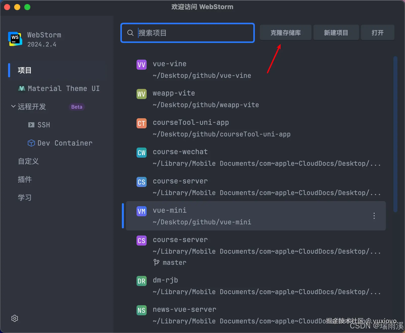 我们首先将项目clone到本地,我这里使用webstorm做演示。