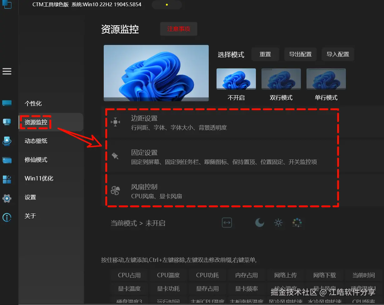 还可自定义资源监控中的字体大小、边距以及风扇转速等参数。