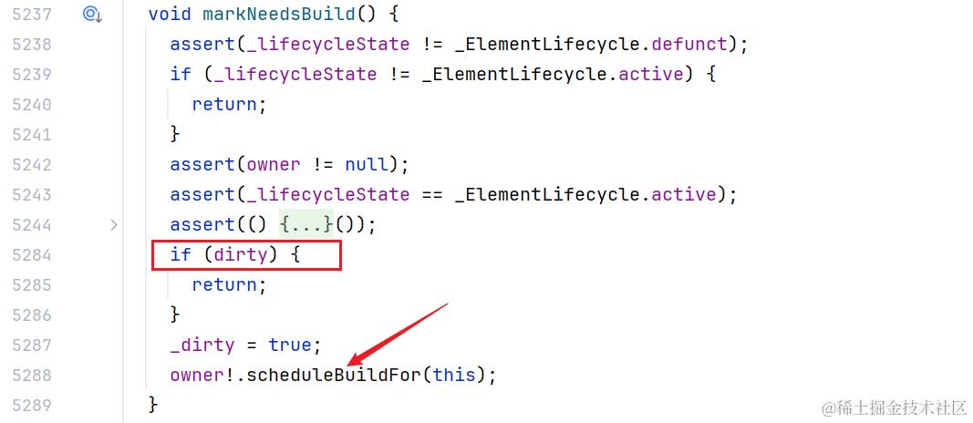 在 《Flutter极限测试 - 连续 setState 1000000 次会怎么样?》 视频中详细介绍了 setState 中的处理逻辑。setState 只是将状态类持有的元素标脏,并触发下一帧的调度。如果以及被标脏,会直接返回,连续调用不会触发多次重新构建: