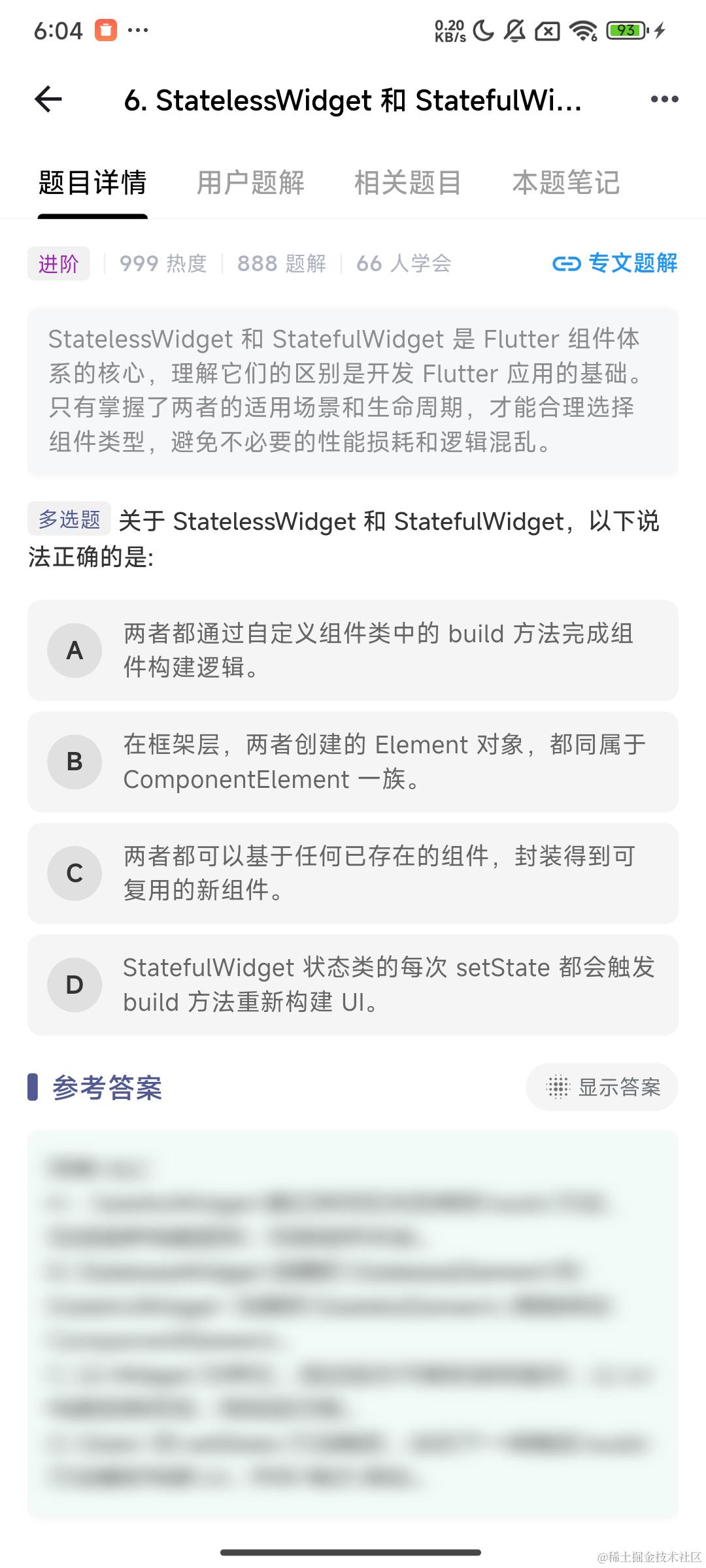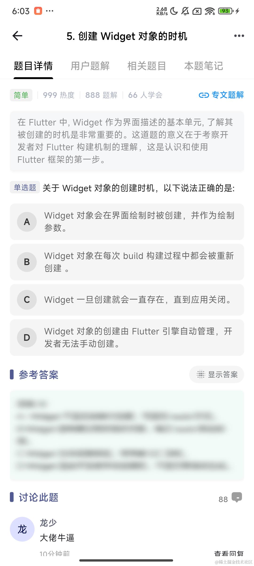 这道题比较综合,其中两个选项涉及到了源码层面的知识。答题错了没关系,只要对 Flutter 又多了一丢丢认知,都是你实打实的收获 ~