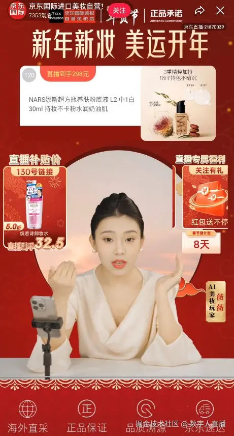 对于数字人在本场直播中的表现,京东国际进口美妆自营免税店的运营人员表示肯定,“这在很大程度上解决了我们在年货节、春节期间的直播困惑。”