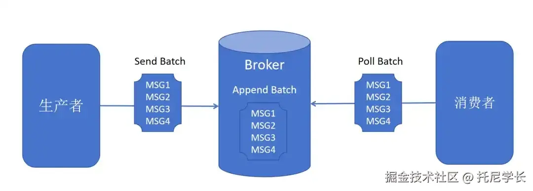 在Kafka的内部实现中,无论是生产者发送消息给Broker,还是Broker将消息落盘持久化,以及消费者从Broker上拉取消息,都是以批处理的方式进行的。