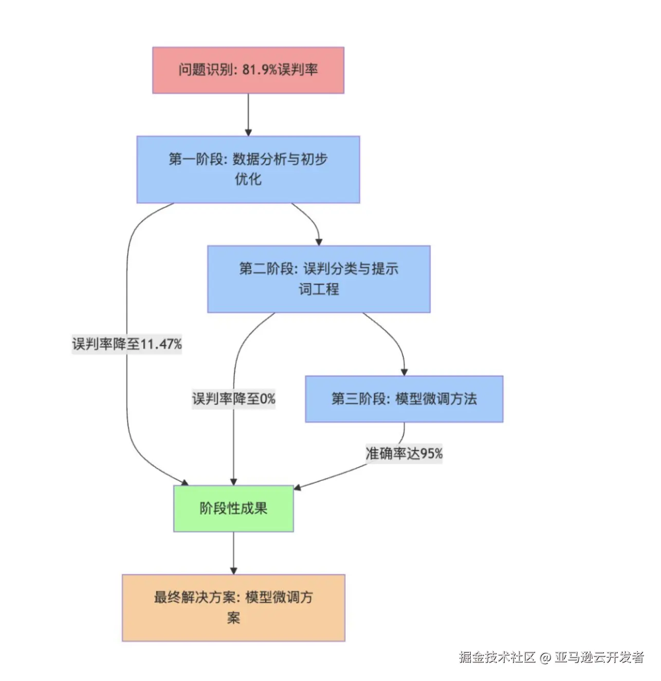 - 第二阶段:误判分类与提示词工程:采用更系统化、数据驱动的方法,进一步降低误判率。