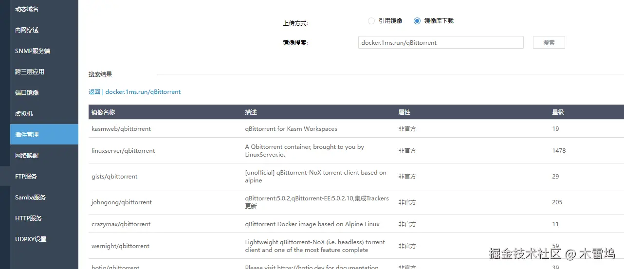 Nas-iKuai配置Docker搜索 木雷坞 2025-06-09 290 阅读1分钟 爱快内置支持毫秒镜像,所以将爱快升级至最新版本即可解决 升级到最新版本后,不需要查看下面 请注意搜索格式,不需要包含http://或者https:// !!!!!!! 参考文档 爱快官方教程文档 毫秒镜像官方文档
