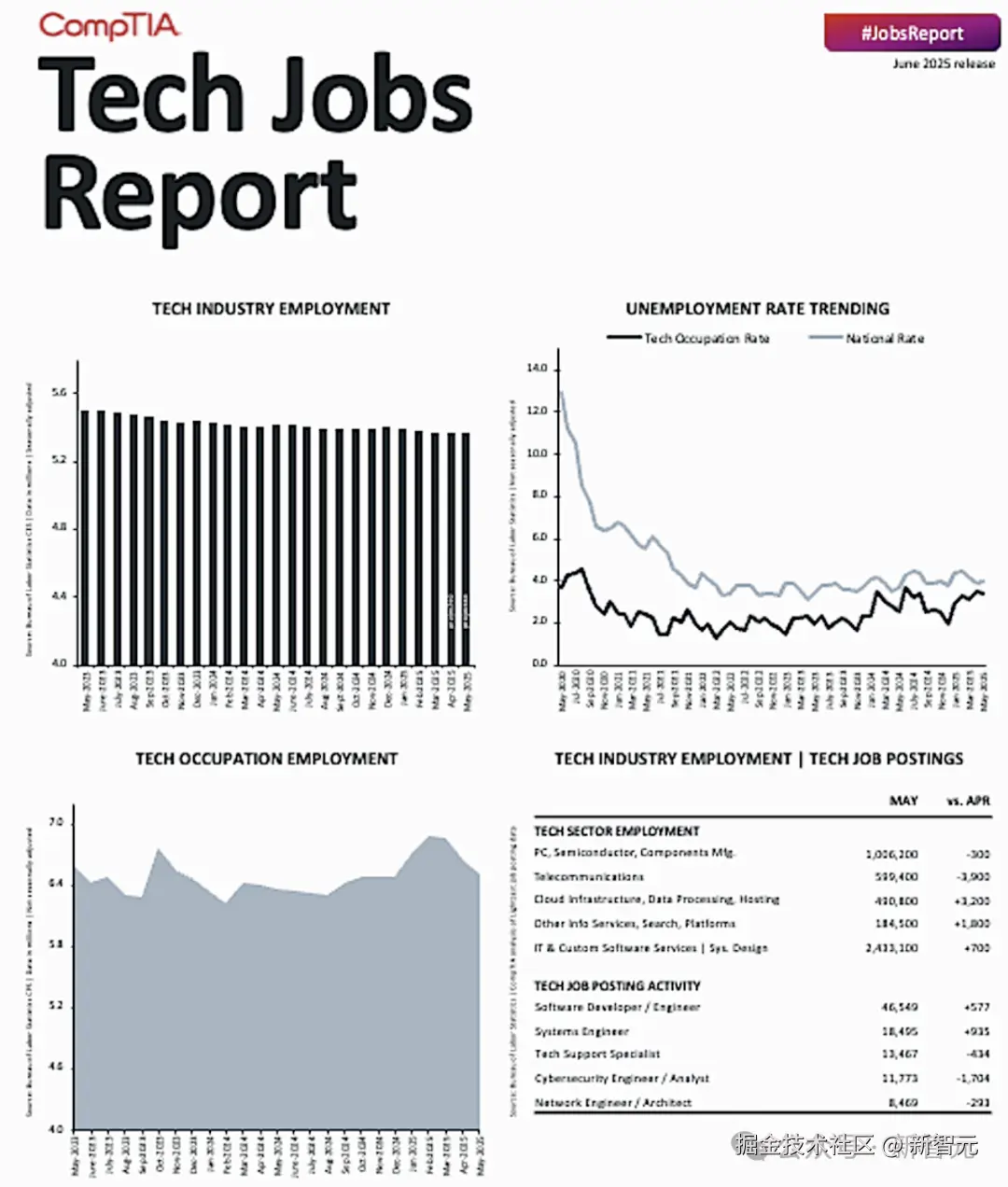 CompTIA 表示:「得益于前几个月的就业增长,技术职位年度累计仍保持净增态势。」